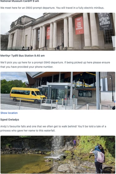Meet your guide at the National Museum in Cardiff on the front steps, then it's off to Pontneddfechan and the start of our hike. We will hike to and visit each waterfall as you learn about the local area from your guide. You'll gain 400m of height on the 15km hike, which is often over rough, muddy and broken ground. For our hiking troubles, we get amazing scenic views of the park and wonderful memories of sparkling waterfalls. We strongly recommend sturdy hiking boots or shoes on this day long hike.
