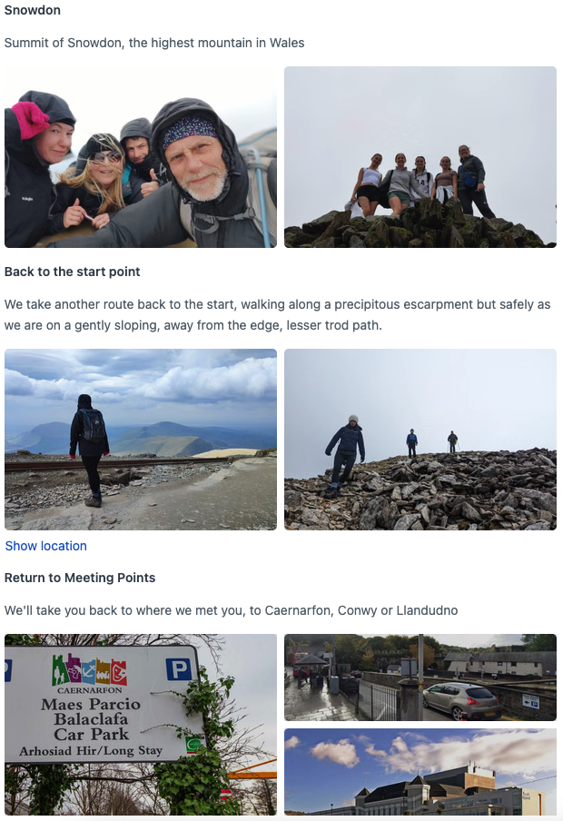 This tour includes transport from Llandudno to the start point, and of course, return at the end of our mountain hiking day. See the itinerary tab for pickup times.