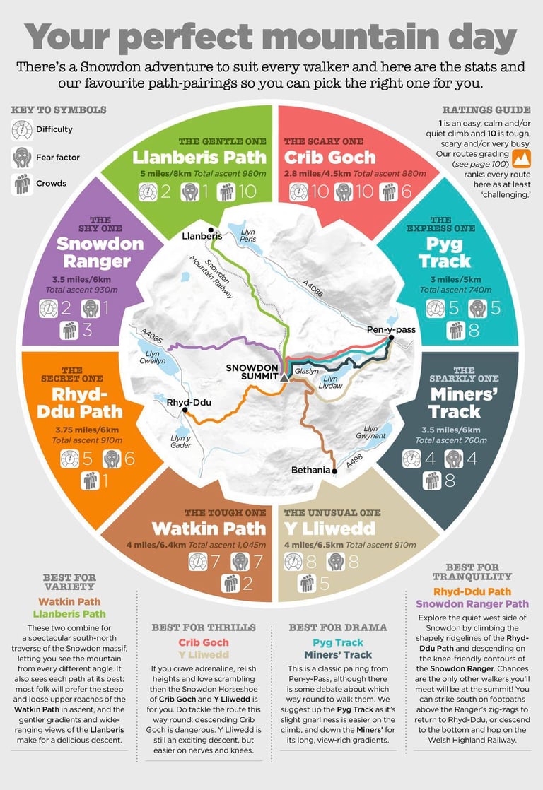 Wales Outdoors Mountain Leader led small group hikes to the summit of Snowdon, taking the Ranger Path, usually following it in its entirety to the summit, then, for those up for a challenge, we follow the cliff edge and travel over rough and broken ground on the descent, making this a circular route and one that is lesser walked, so midweek we'll have the mountain almost to ourselves.